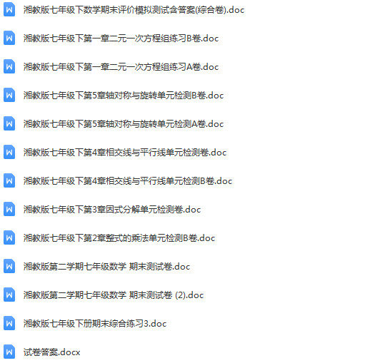 资源名称:湘教版初中数学七年级下册成套课件+教案+导学案+试题练习+试卷+备课素材汇编