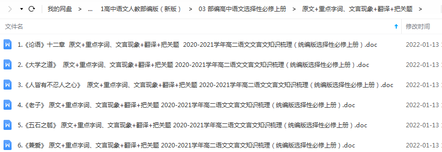资源名称:新2020版高中语文选择性必修相关原文+重点字词、文言现象+翻译+把关题汇编
