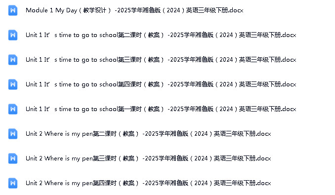 鲁教湘教版(三年级起点)(2024)小学英语三年级下册(2024)成套ppt课件+教案+音频素材+期末试题参考汇编,此资源由会员整理,教师听课网是教师朋友的最佳选择。如需下载完整格式资源,请点击上方立即下载,解压即可