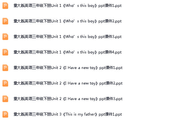 资源名称:重大版(三年级起点)(2024)小学英语三年级下册(2024)成套ppt课件+教案+试题练习+音频素材汇编
