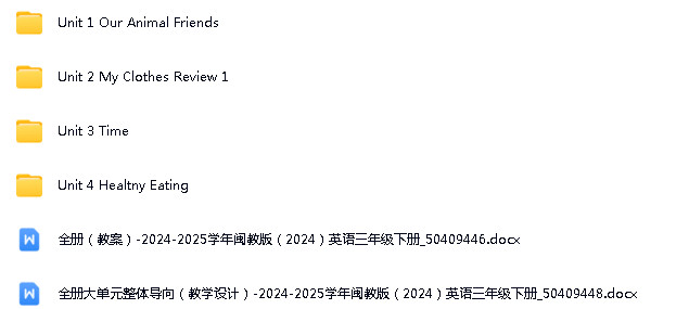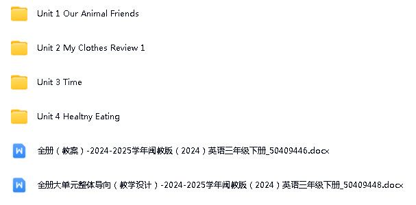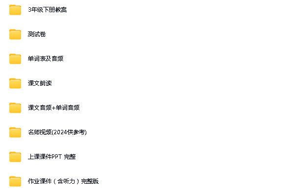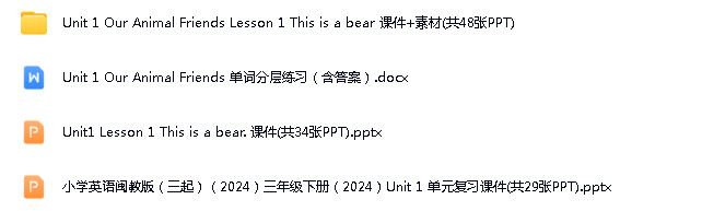 资源名称:闽教版(三年级起点)(2024)小学英语三年级下册(2024)成套ppt课件+教案+试题练习+作业课件+音频素材汇编