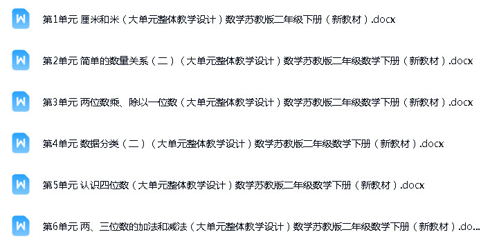 资源名称:新苏教版(2024)小学数学二年级下册课件+教案+学习任务单+练习+大单元教学设计+电子课本素材汇编(更新中)