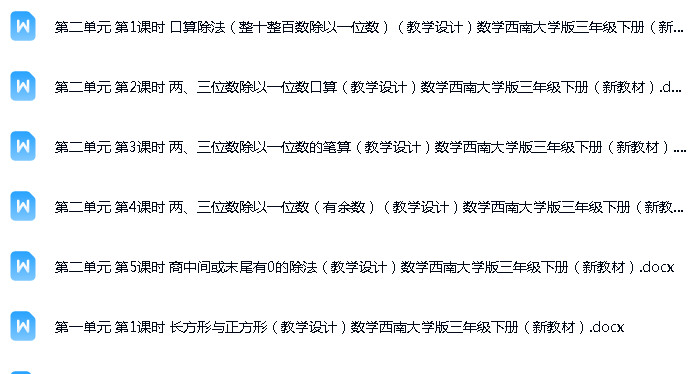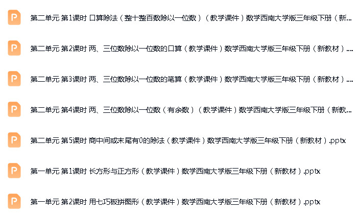 资源名称:西南师大版(2024)小学数学三年级下册(2024)成套ppt课件+教案+分层练习汇编