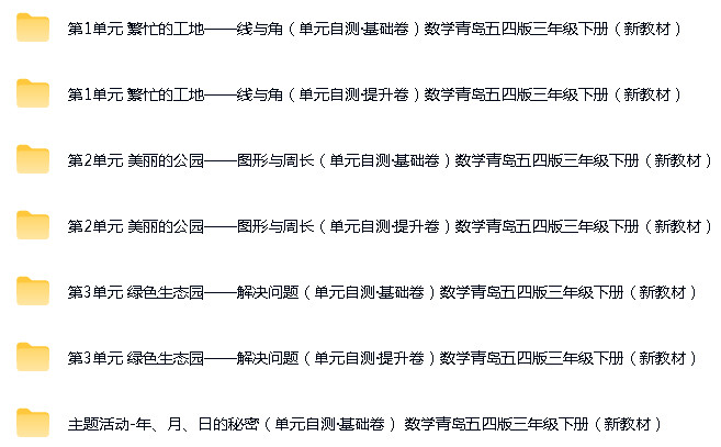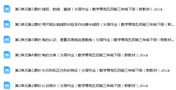 资源名称:青岛版(五四制)(2024)小学数学三年级下册成套ppt课件+教案+试题练习+单元测试+知识清单+pdf电子课本汇编
