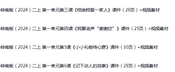 资源名称:岭南版(2024)小学美术二年级上册(2024)多套ppt精品课件+教案+视频素材+PDF电子课本汇编