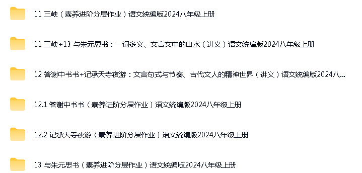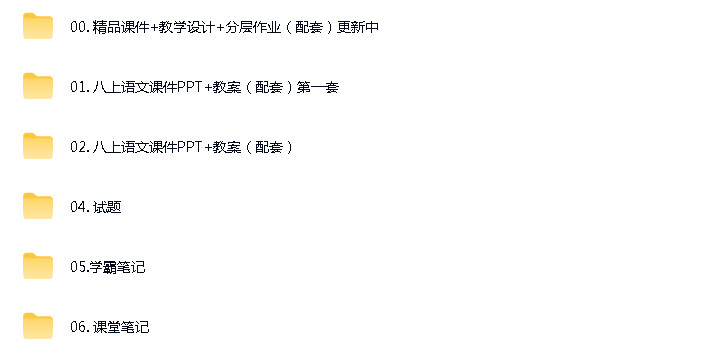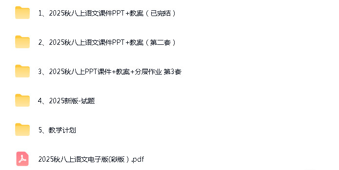 资源名称:人教部编版 (2024)(五四制)初中语文八年级上册成套ppt精品课件+核心素养教案+导学案+分层练习+知识清单素材+PDF电子课本汇编(三套合一)