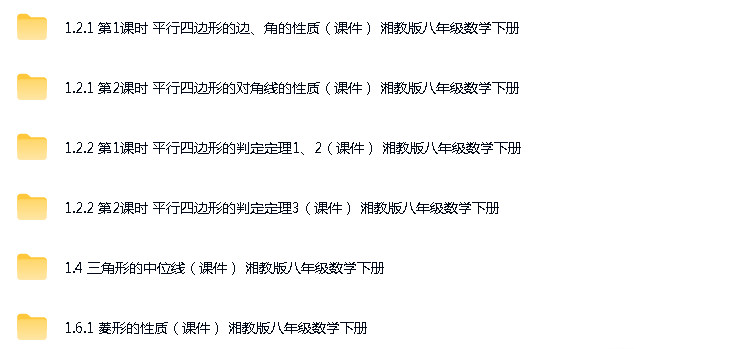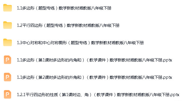 资源名称:湘教版(2024)初中数学八年级下册(2024)多套ppt精品课件+试题练习汇编