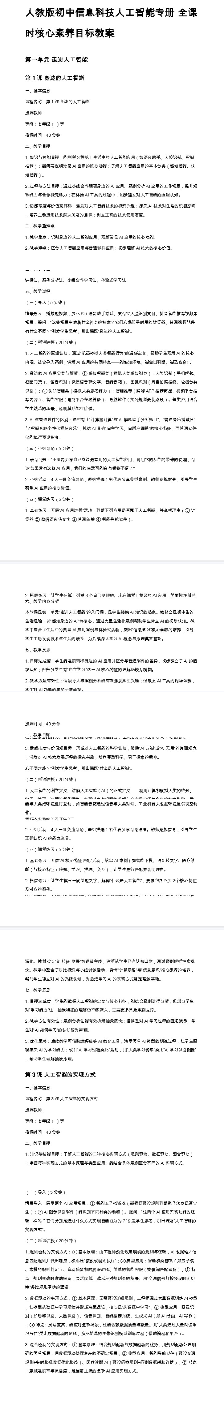 资源名称:人教版(2024)初中信息技术人工智能专册(2024)成套word教案汇编