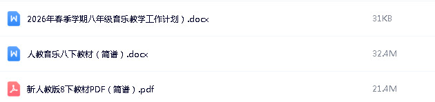资源名称:人教版(简谱)(2024)初中音乐八年级下册成套ppt课件+教案+素材汇编