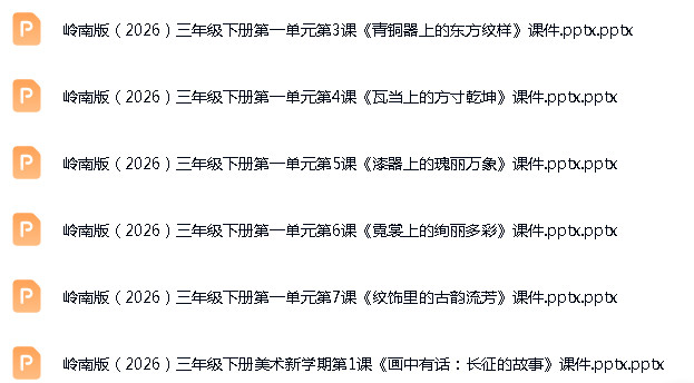 资源名称:岭南版(2024)小学美术三年级下册配套ppt精品课件+教案+素材汇编